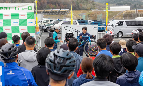 チームマトリックスの選手によるロードレース講習会を行ないます。受講される方は表彰ステージ前にお集りください。