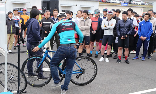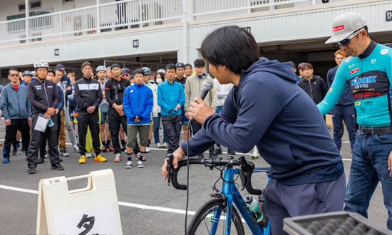 講習会は、出走する前に行う自転車のチェックという基本的なことから、コーナーリングのテクニックや、集団走行のアドバイス等、プロのアドバイスが聞ける貴重な機会です!レースの集団走行に自信のない方、初めてレースに参加される方はもちろん中上級者の方にも確認できることがたくさんあります。この機会にぜひ参加してください。